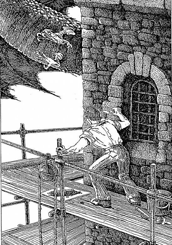 It's always surprising which drawings people like. This was never one of my best, it's a little robot window cleaner, generating water and power from the solar cells on his back. Here he is plodding up and down the skyscrapers long after humans are no more...